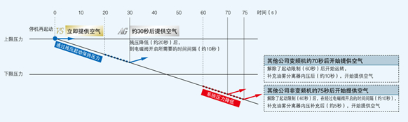 VS系列通過優(yōu)良的扭矩控制,電機停止后可以馬上重啟。 優(yōu)越于其他公司,沒有1分鐘的啟動時間限制,防止緊急時壓力下降。