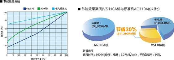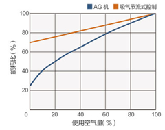 AG系列采用新型的加/卸載控制方式,和以前的吸氣節(jié)流式相比,無負(fù)載時(shí)的特性更加優(yōu)越。 節(jié)流式相比,無負(fù)載時(shí)的特性更加優(yōu)越。 另外,控制時(shí)負(fù)擔(dān)較大的吸氣調(diào)整閥采用的特殊的氧化鋁膜處理法。通過加載、卸載相互切換,保障壓縮空氣的穩(wěn)定供應(yīng)和節(jié)能。