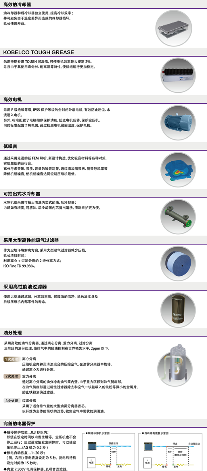 采用神鋼專用變頻器及節(jié)能邏輯綜合控制, 無論在任何負(fù)載條件下都能實(shí)現(xiàn)最佳的節(jié)能效果。 可以快速追蹤壓力的變化,將壓力波動(dòng)控制在 ±0.01MPa之內(nèi),利用最佳的動(dòng)力精確地提供必要的排氣量。