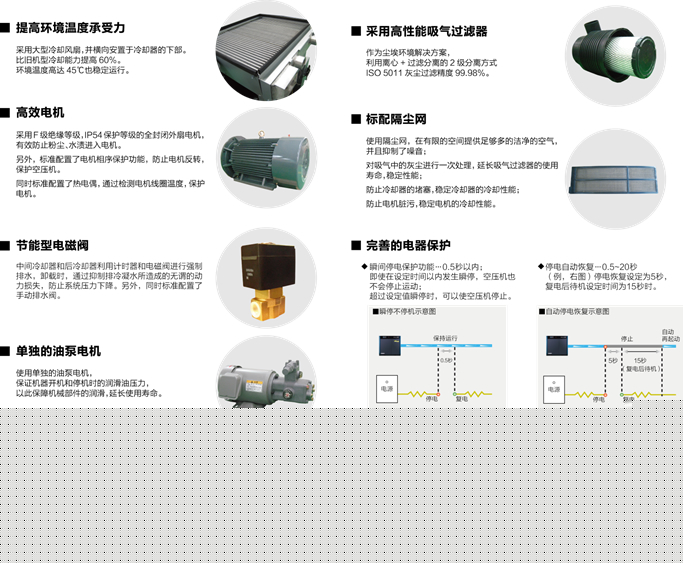 FE系列無油式螺桿空壓機(jī)凝集了神鋼百年的壓縮機(jī)研發(fā)、生產(chǎn)技術(shù),為您提供完全無油的壓縮空氣