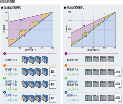 ■根據(jù)使用空氣量自動選擇最佳臺數(shù),進行最高效的運行控制。
